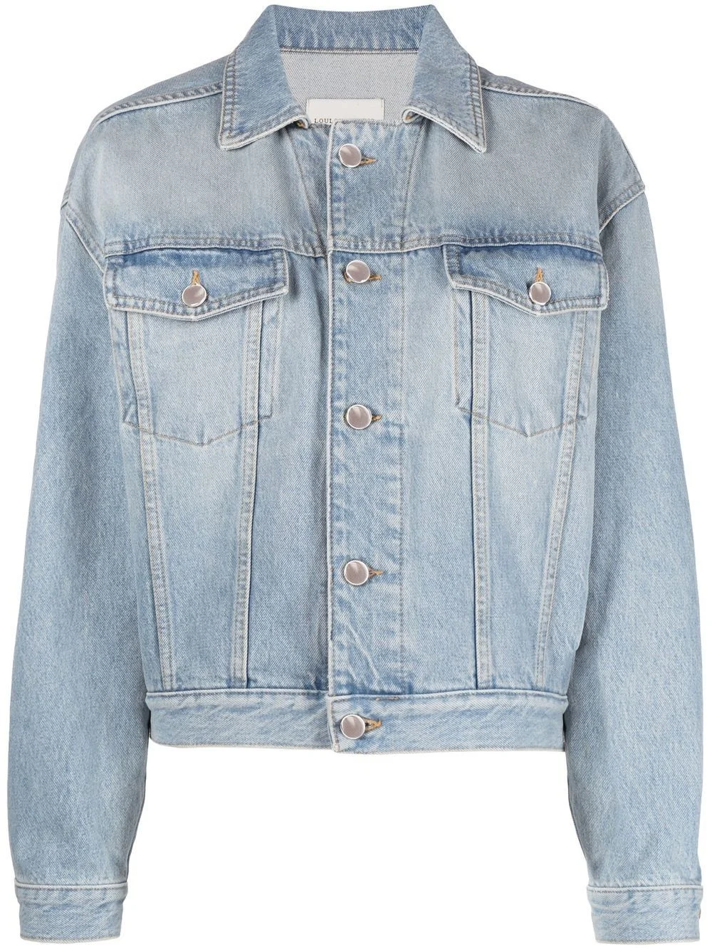 long-sleeved denim jacket Consciously crafted from organic cotton, this denim jacket from Loulou Studio achieves a timeless aesthetic through its classic light blue hue and traditional button-front silhouette. Highlights - Light blue - Organic cotton - Spread collar - Front button fastening - Chest flap pockets - Long sleeves - Buttoned cuffs - Straight hem Made in Italy Composition Organic Cotton 100% SIZE & FIT Model measurements Height 5 ft 10 in(1.78 m) Bust/Chest 31.49 in(80 cm) Hips 35.03 in(89 cm) Waist 23.62 in(60 cm) Measurement SLEEVE LENGTH 21.25 in(54 cm) LENGTH 22.44 in(57 cm) WAIST 36.22 in(92 cm) BUST 40.94 in(104 cm) Shoulder Width 21.25 in(54 cm) FittingInformation This piece fits true to size. We recommend you get your regular size Cut for a loose fit Made with a mid-weight non-stretch fabric