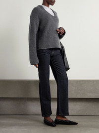 Loulou de Saison's 'Derry' sweater is made from cashmere that's exceptionally soft. Cut for a loose fit, it has a ribbed scooped neckline, dropped shoulders and rolled trims. Wear yours with everything from tailoring to jeans. Size & Fit - Intended to be oversized; we recommend sizing down if you prefer a closer fit - Dropped shoulder seam - Mid-weight knit - Model is 177cm/ 5'10" and is wearing a size Small Model measurements: - Bust: 80cm/ 31.5" - Waist: 60cm/ 23.5" - Hip: 89cm/ 35" Details & Care - Gray cashmere - Slips on - 100% cashmere - Hand wash