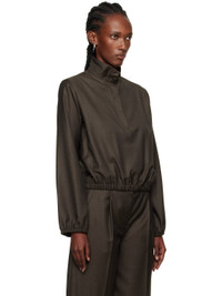 Super 120s virgin wool twill jacket. · Certified OEKO-TEX® Standard 100 · Stand collar · Concealed button placket · Seam pockets at waist · Elasticized hem and cuffs Supplier color: Grizzly Body: 100% virgin wool. Pocket lining: 100% viscose. Made in Romania 252473F107005