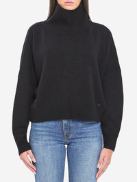 Black sweater in extrafine merino wool and cashmere. Features a ribbed turtleneck, long sleeves, ribbed hem and cuffs, and a subtle logo detail at the hem. Cropped cut with a regular fit. The model is 180 cm tall and wears size XS. More Info Product Number : 5289718 Product Code : LUKEBLK The model is 180 cm tall and wears size XS. Composition : 90% merino wool extrafine. 10% cashmere Made in: Mongolia