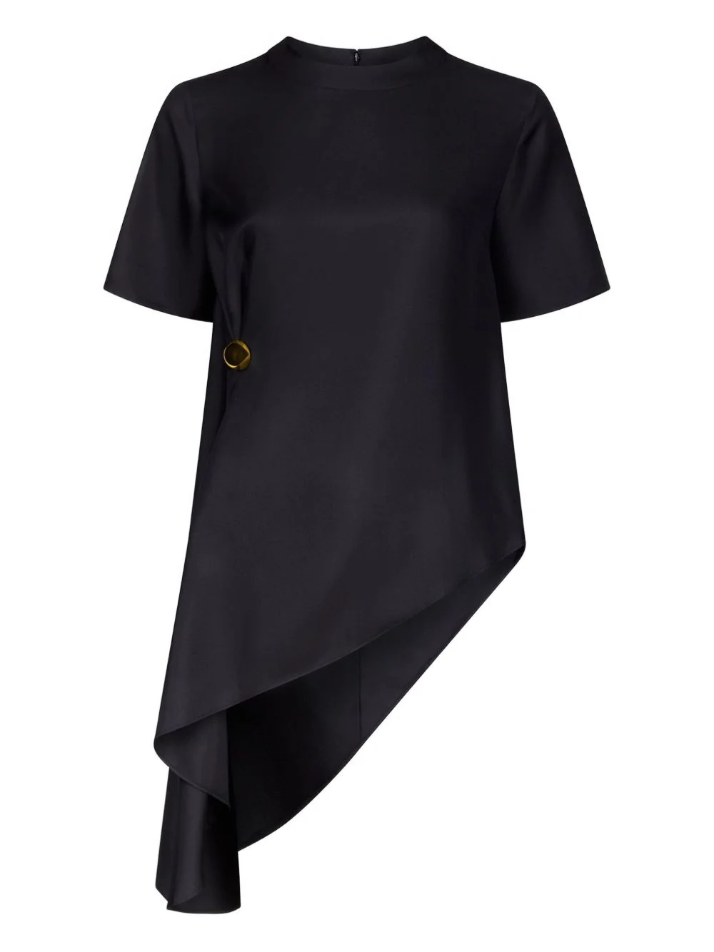 MADEA asymmetric top Highlights - Black - Silk - Asymmetric design - Gold-tone detail - Short sleeves - Crew neck Imported Composition Silk 100% Washing instructions Read Manufacturer Guidelines
