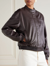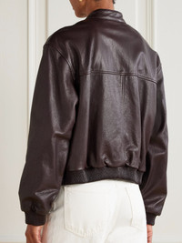 Loulou de Saison takes a distinctly Parisian approach to minimalism, ensuring each design is effortlessly chic and elevated. This 'Marlow' jacket is made from chocolate textured-leather in a slouchy bomber-style shape and has a streamlined placket and elasticated edges. Size & Fit - Fits true to size, take your normal size - Designed for a relaxed fit - Dropped shoulder seam - Ribbed hem - Structured, non-stretchy leather - Model is 177cm/ 5'10" and is wearing a FR 36 Model measurements: - Bust: 86cm/ 34" - Waist: 65cm/ 25.5" - Hip: 90cm/ 35.5" Details & Care - Chocolate textured-leather (Calf) - Zip fastening through front - 100% leather - Specialist clean - Designer color: Coffee