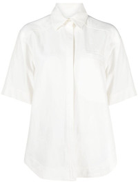 Moheli short sleeve shirt white linen blend classic collar front button placket short sleeves curved hem Imported Composition Outer: Viscose 85%, Linen/Flax 15% Lining: Viscose 100% SIZE & FIT Model measurements Height 5 ft 10 in(1.78 m) Bust/Chest 33.07 in(84 cm) Hips 35.82 in(91 cm) Waist 25.98 in(66 cm) Measurement Shoulder Width 18.89 in(48 cm) FittingInformation This piece fits true to size. We recommend you get your regular size Cut for a loose fit Made with a mid-weight non-stretch fabric Washing instructions Hand Wash