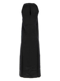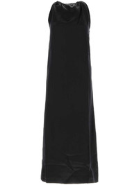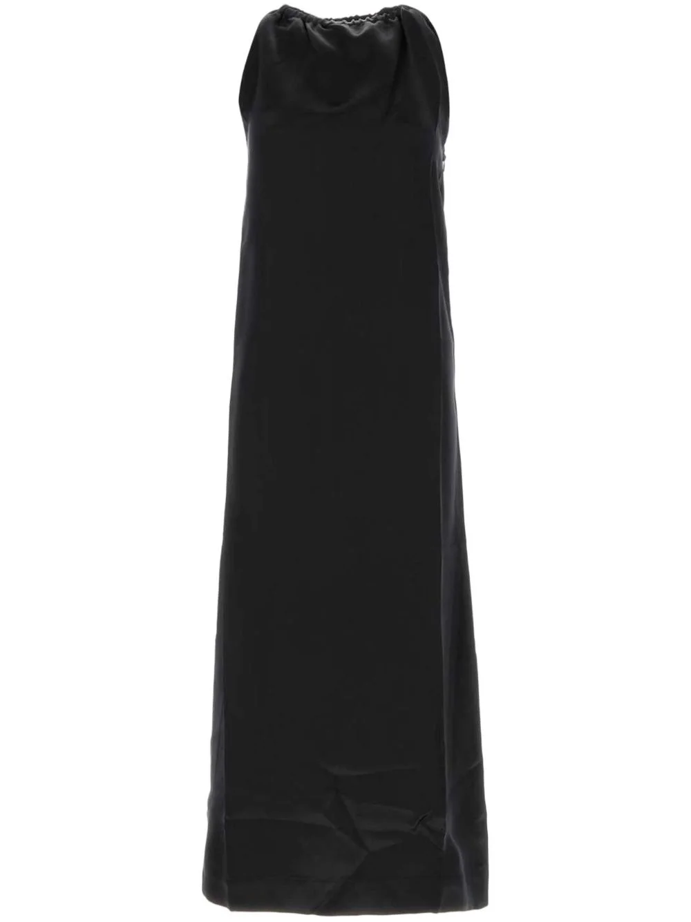 Morene dress Highlights - Black - Silk satin - A-line - Gathered neckline - Halterneck - Concealed rear zip fastening - Sleeveless - Side slits - Straight hem - Mid-calf length Imported Composition Silk 52%, Viscose 48% SIZE & FIT FittingInformation Designed for a slim fit that sits just away from the body offering a close yet comfortable fit The vented hem offers movement at the rear Made from a midweight non-stretch fabric