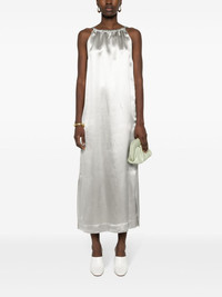 Morene metallic maxi dress Highlights - Grey - Silk blend - Satin weave - Metallic effect - Ruched detailing - Halterneck - Keyhole detail to the rear - Sleeveless - Side slits - Ankle-length - Straight hem - Unlined - Single rear button fastening - Concealed side zip fastening Imported Composition Silk 52%, Viscose 48% SIZE & FIT Model measurements Height 5 ft 11 in(1.8 m) Bust/Chest 32.67 in(83 cm) Hips 36.22 in(92 cm) Waist 24.4 in(62 cm) FittingInformation Designed to be unstructured, offering a loose fit throughout Made from a lightweight non-stretch fabric This piece fits true to size – take your usual size