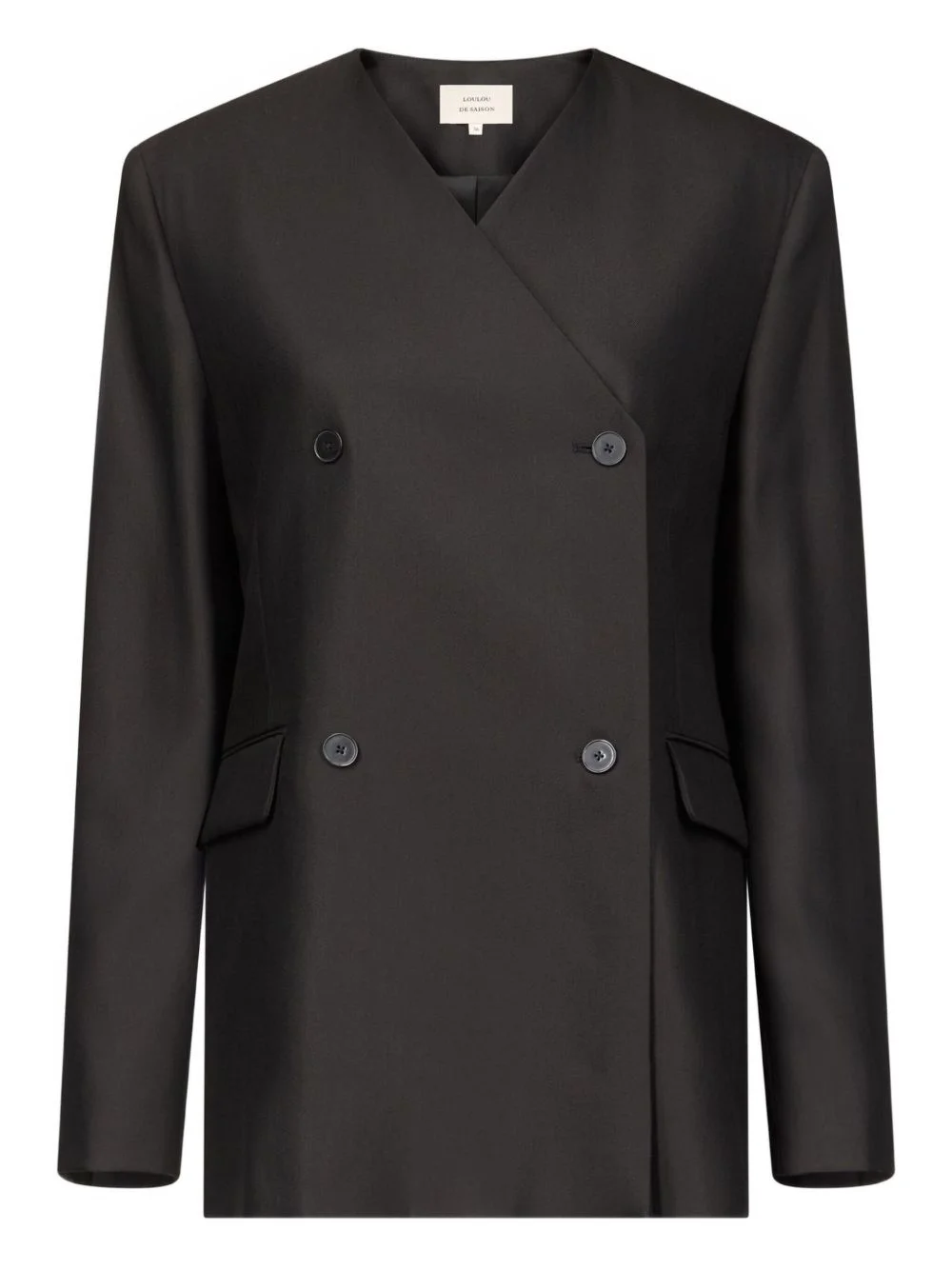 Munro double-breasted V-neckline jacket Highlights Imported Composition Viscose 50%, Wool 35%, Mohair 15%