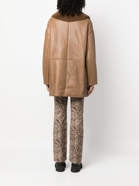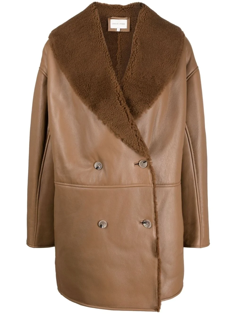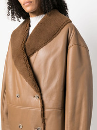 Namo double-breasted shearling-lined coat Highlights - Brown - Lambskin - Shearling lining - Panelled design - Shawl lapels - Double-breasted button fastening - Long sleeves - Two side welt pockets - Thigh-length - Straight hem Imported Composition Outer: Lamb Skin 100% Lining: Sheep Skin/Shearling 100% SIZE & FIT Model measurements Height 5 ft 10 in(1.78 m) Bust/Chest 33.07 in(84 cm) Hips 36.61 in(93 cm) Waist 24.8 in(63 cm) Measurement SLEEVE LENGTH 16.14 in(41 cm) LENGTH 33.46 in(85 cm) WAIST 49.6 in(126 cm) BUST 50.39 in(128 cm) FittingInformation Designed for an oversized fit, offering additional room throughout Firm shearling has a treated construction offering some durability This piece fits true to size – take your usual size Washing instructions Specialist Cleaning