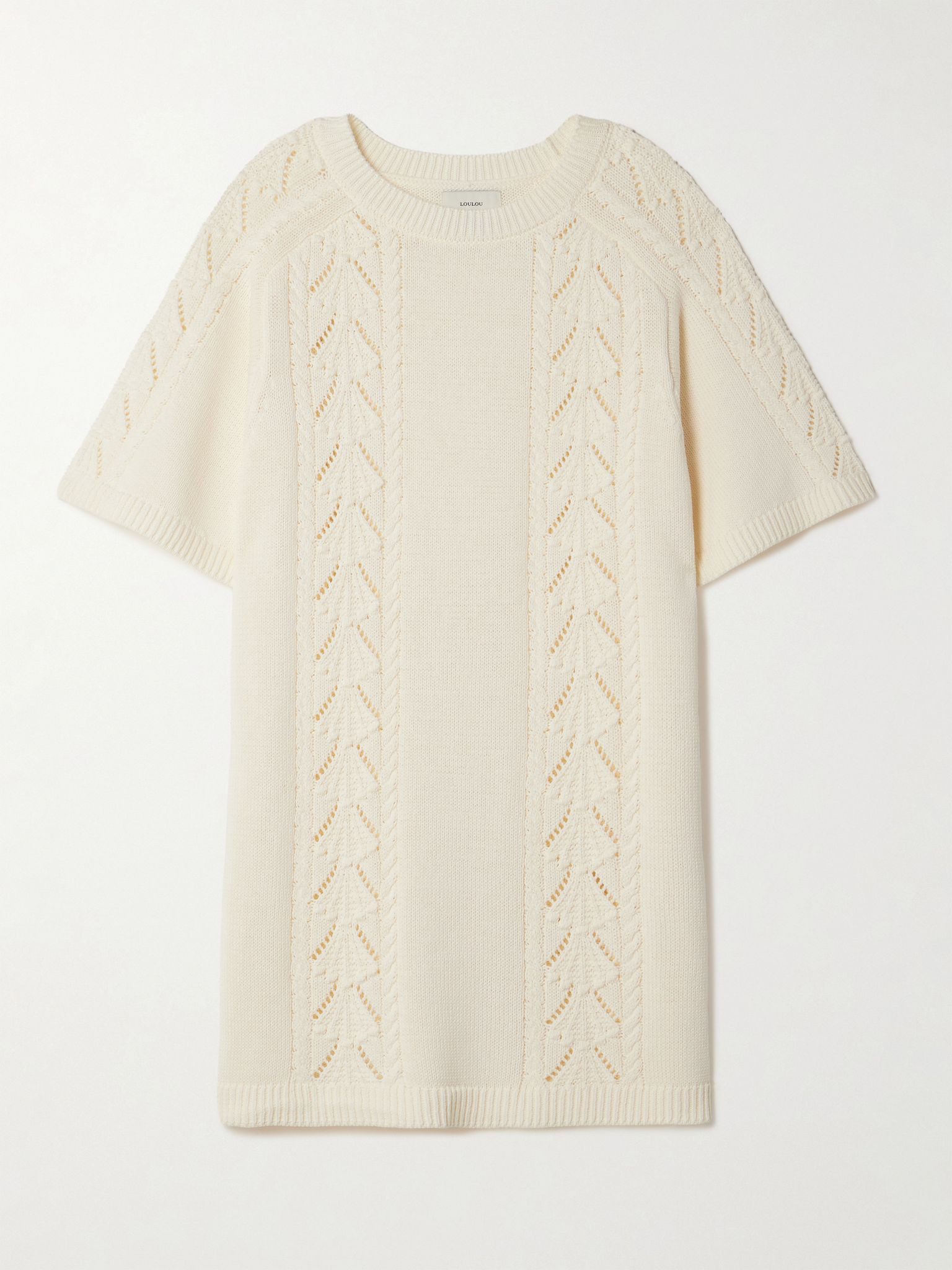 Arman cable and pointelle-knit cotton mini dress Ivory