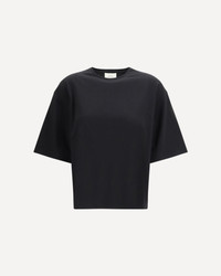 The Osis T-shirt by Loulou de Saison, clean and effortless, featuring a classic crew neckline and dropped shoulders that shape a relaxed silhouette. The short sleeves with slouched shoulders enhance its modern, easy-going appeal, making it a versatile everyday essential. DETAILS - Sku: OSIS_BLACK - Season: SS26 - Fit: Regular - Composition: GENERAL 100% Cotton - MADE IN PORTUGAL