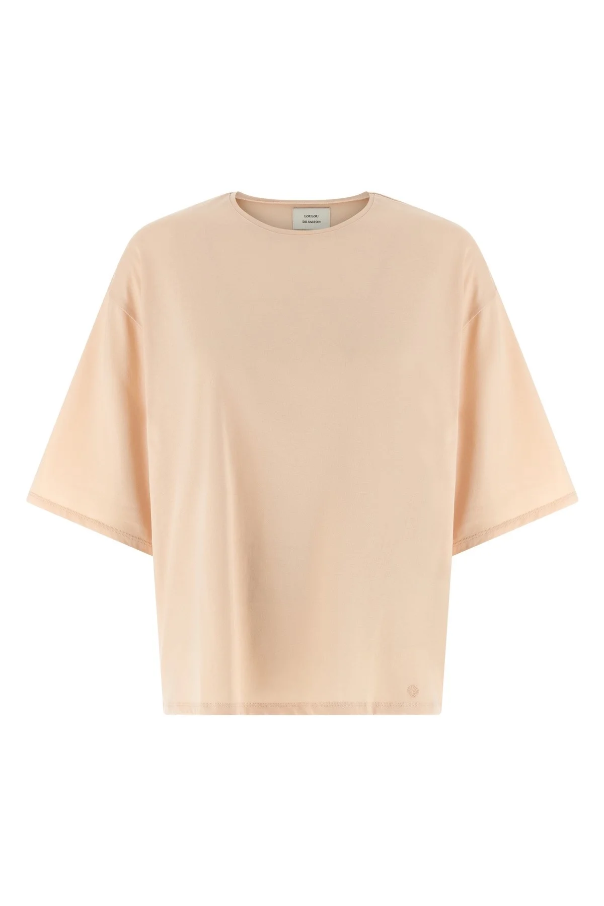 cod. OSISCREAMROSE Supima cotton 'Osis' T-shirt with tone-on-tone embroidered logo on the front, crew neck, short sleeves with dropped shoulders. Color: Pink Size & Fit: oversized boxy fit Composition: 100% cotton Made in: Portugal