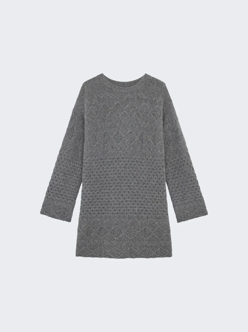 Details - Wool blend knit - Long sleeves - Loose, relaxed fit - Wide sleeves - Cable knit Dimensions: Model is 5'9"/175cm and is wearing a size S Composition: Wool, 40% Yak Fiber Wool, 10% Nylon Care: Care according to label Brand Style: PELAGIA Designer/Brand: LOULOU DE SAISON