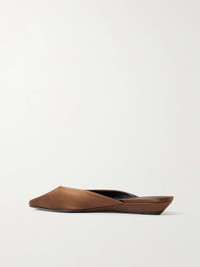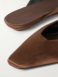 EDITORS'NOTES LOULOU STUDIO's 'Petros' slippers will look chic worn with everything from tailoring to midi dresses. They're made from supple satin with sleek squared-off toes and rest on slight heels for a subtle lift. SIZE & FIT - Fits true to size, take your normal size - Italian sizing DETAILS & CARE - Slight heel - Brown satin - Slip on - Designer color: Pecan Brown