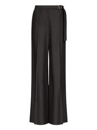 pleated buckle-fastening trousers Highlights - Black - Front pleats - Buckle belt - Side pockets - Zipper closure - Wide legs Imported Composition Fabric 100% Washing instructions Read Manufacturer Guidelines