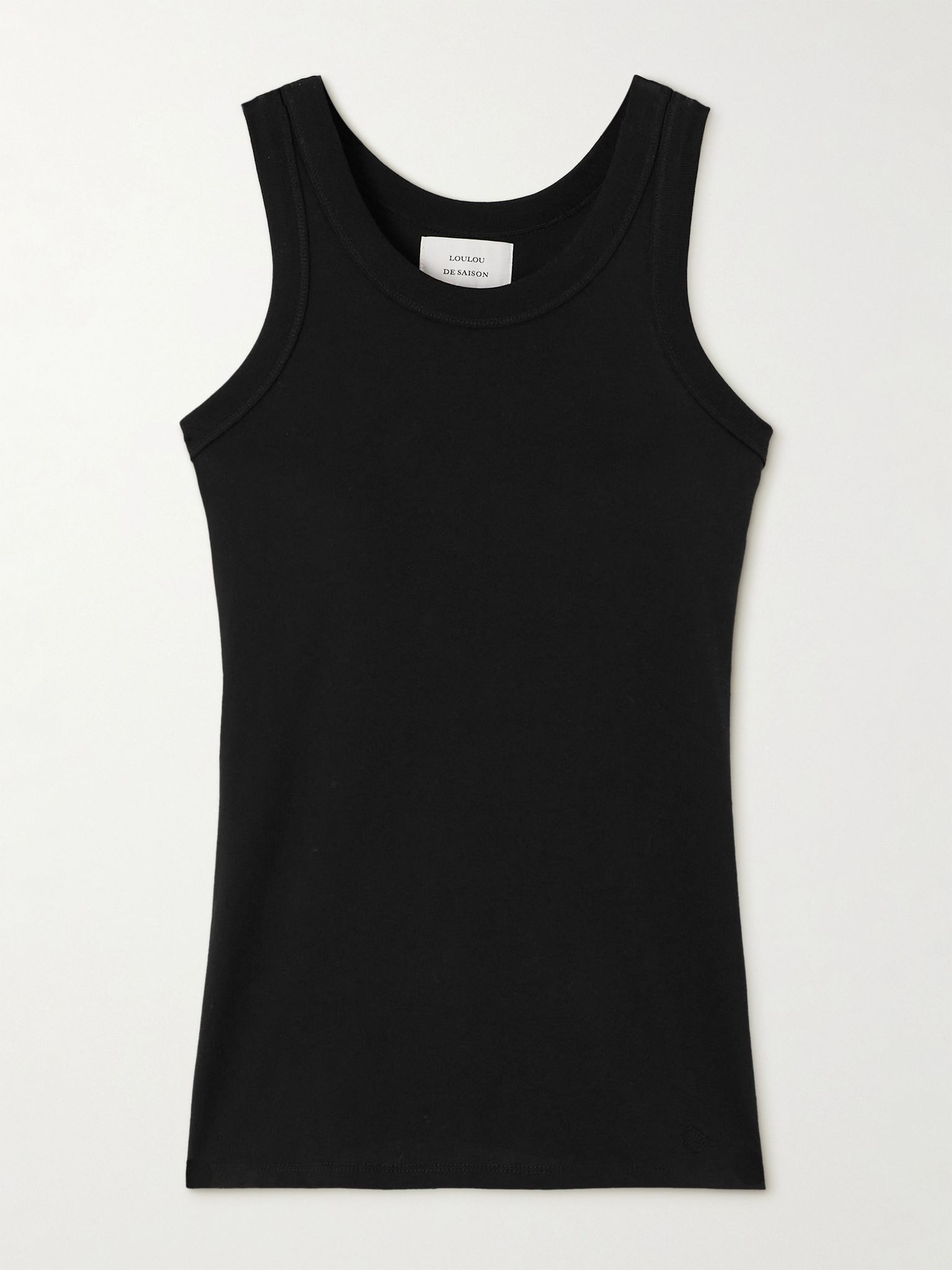 Comfortable and versatile, Loulou De Saison's 'Poso’ tank is the perfect wardrobe staple. It’s cut from Supima cotton-jersey for a slim fit and and has racer-inspired shoulder straps. Wear yours tucked into everything from tailoring to jeans or a skirt. Size & Fit - Fits true to size, take your normal size - Designed for a slim fit - Mid-weight, slightly stretchy fabric - Model is 177cm/ 5'10" and is wearing a size Small Model measurements: - Bust: 86cm/ 34" - Waist: 65cm/ 25.5" - Hip: 90cm/ 35.5" Details & Care - Black Supima cotton-jersey - Slips on - 100% Supima cotton - Machine wash