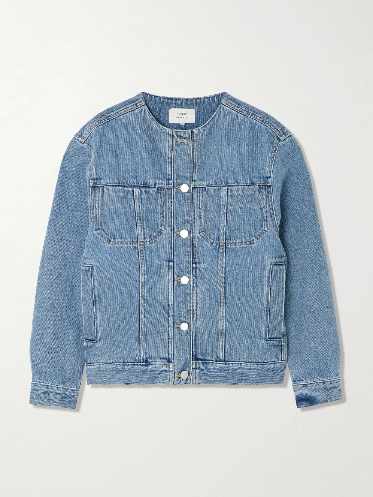 Loulou de Saison's collections evoke the contemporary elegance of Parisian style. This 'Rima' jacket has been made in Italy from certified organic denim and has a chic collarless design. Lower-Impact Materials. This product is made using at least 50% lower-impact materials or ingredients. Find out more about our NET SUSTAIN criteria here.
