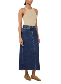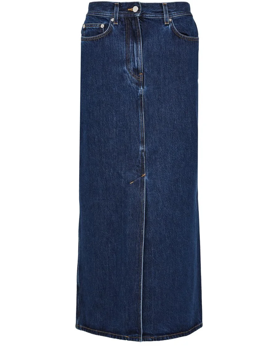 DESCRIPTION - Straight skirt - Faded denim - Maxi length - Five-pocket style - Belt loops - Button fastening DETAILS AND CARE MATERIAL: 100% Organic cotton COLOR: washed_blue COUNTRY OF MANUFACTURE: Italy PRODUCT CODE: LLSKVY79BLU1T1AA00 The model is 5ft 10in / 1.78m tall and wears a size S.