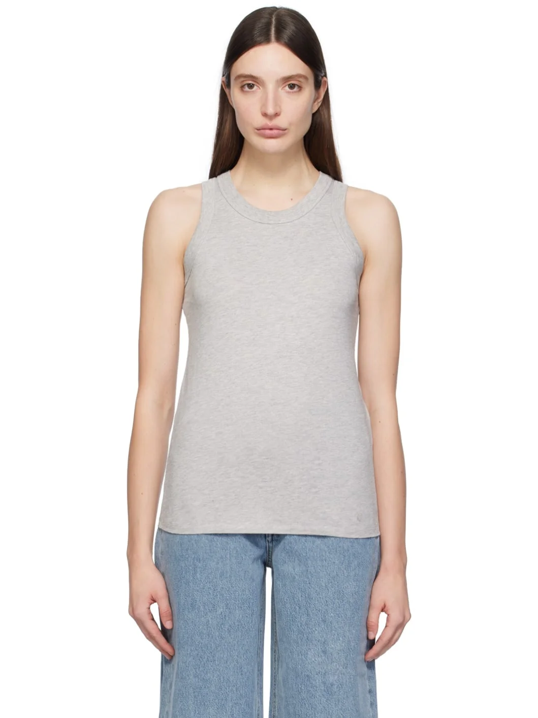 Lightweight Oeko-Tex® Standard 100 and GOTS-certified organic pima cotton jersey tank top. · Rib knit crewneck and armscyes · Logo embroidered at front hem Supplier color: Grey melange