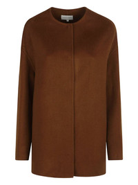 round-neck wool coat Highlights - Brown - Round neck - Concealed front fastening - Long sleeves - Relaxed fit Imported Composition Wool 100% Washing instructions Read Manufacturer Guidelines