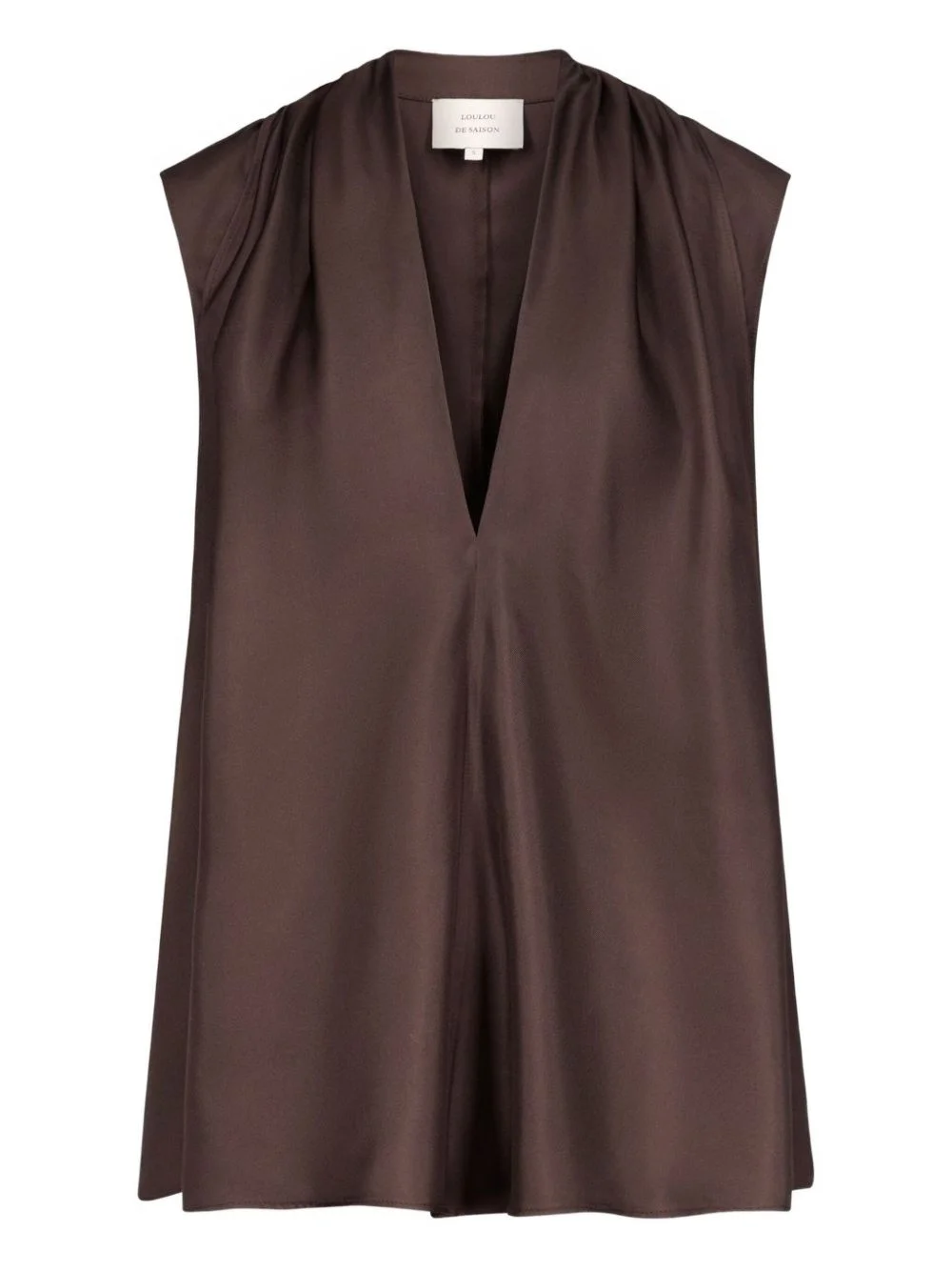 Sade gathered sleeveless blouse Highlights - Brown - V-neck - Sleeveless - Gathered neckline Imported Composition Silk 100% Washing instructions Read Manufacturer Guidelines