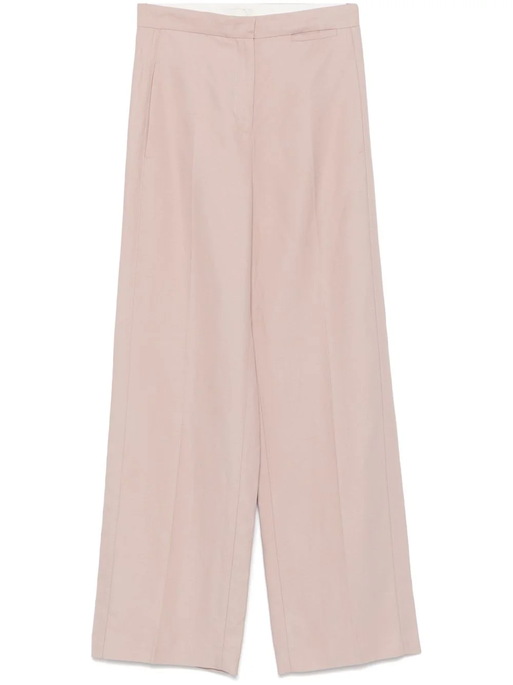 tailored trousers Highlights - Powder pink - Concealed front button, hook and zip fastening - Front welt pocket - Two side slit pockets - Rear jetted pocket Imported Composition Outer: Viscose 85%, Linen/Flax 15% Lining: Viscose 100% SIZE & FIT Model measurements Height 5 ft 10 in(1.79 m) Bust/Chest 31.88 in(81 cm) Hips 35.43 in(90 cm) Waist 23.62 in(60 cm) FittingInformation Designed for a straight-leg fit, these trousers allow for a close fit at the waist and an unrestricted, comfortable fit over the leg Made from a midweight non-stretch fabric