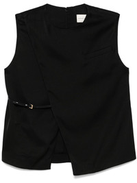 Sambac vest Highlights - Black - Tailored design - Interlock twill weave - Concealed rear zip fastening - Buckle-strap fastening - Round neck - Draped panel detail - Sleeveless - Chest welt pocket - Asymmetric hem Imported Composition Viscose 86%, Wool 14% SIZE & FIT Model measurements Height 5 ft 10 in(1.78 m) Bust/Chest 33.85 in(86 cm) Hips 36.61 in(93 cm) Waist 26.77 in(68 cm) FittingInformation Designed for a relaxed fit, this piece allows for comfort and movement when worn Made from a midweight non-stretch fabric
