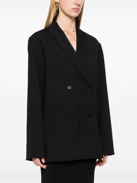 Sancia blazer Highlights - Black - Virgin wool blend - Double-breasted button fastening - Classic lapels - Long sleeves - Two front welt pockets - Full lining - Straight hem Imported Composition Outer: Virgin Wool 95%, Spandex/Elastane 5% Lining: Viscose 100% SIZE & FIT Model measurements Height 5 ft 9 in(1.75 m) Bust/Chest 31.88 in(81 cm) Hips 34.64 in(88 cm) Waist 24.01 in(61 cm) FittingInformation Designed to be unstructured, offering a loose fit throughout The internal shoulder pads offer a structured shape Made from a midweight fabric Washing instructions Hand Wash
