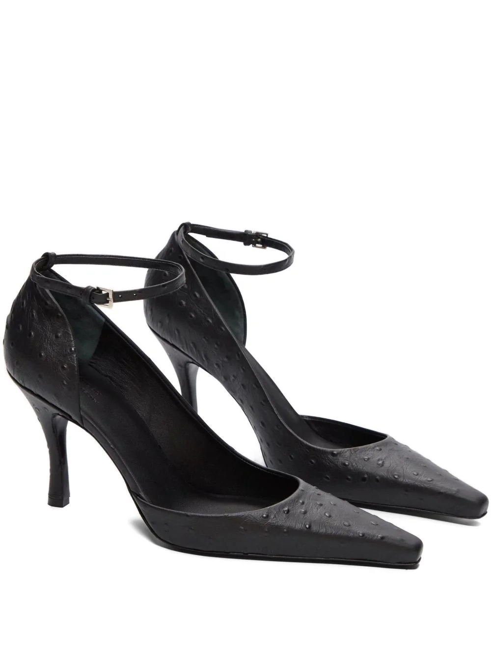 Scala ankle-strap pumps Highlights - Black - Textured finish - Asymmetric upper - Pointy toe - Ankle strap Made in Italy Composition Outer: Calf Leather 100% Lining: Calf Leather 100% Sole: Calf Leather 100%, Rubber 100% SIZE & FIT Measurement HEEL 3.34 in(8.5 cm)