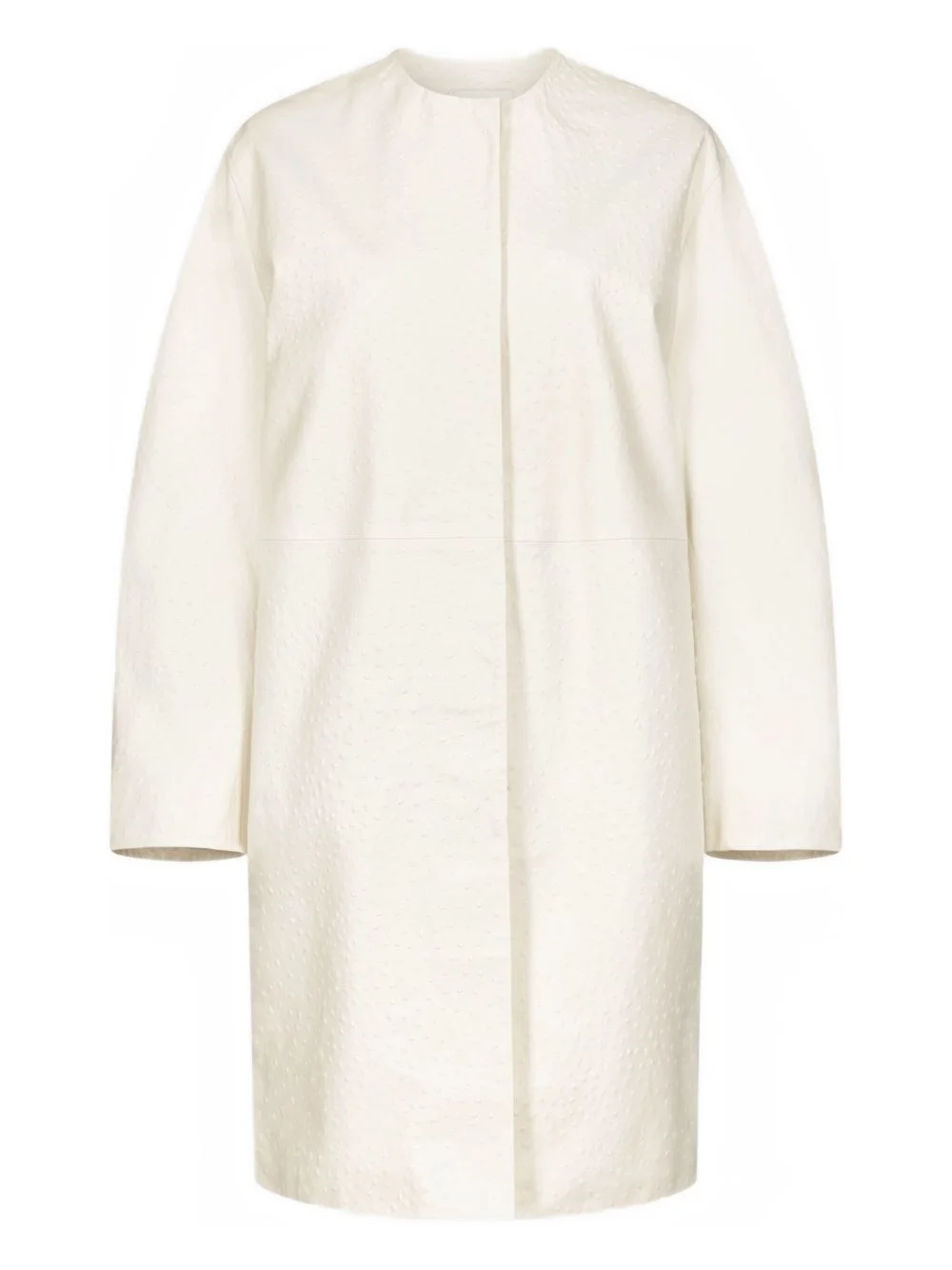 single-breasted collarless coat Highlights - White - Collarless - Button fastening Imported Composition Leather 100%