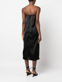 Siple strapless satin midi dress Highlights - Black - Satin finish - Elasticated band - Square neck - Strapless - Shift style - Two side inset pockets - Central rear vent - Calf-length Imported Composition Viscose 100% SIZE & FIT Model measurements Height 5 ft 10 in(1.77 m) Bust/Chest 34.64 in(88 cm) Hips 35.43 in(90 cm) Waist 24.8 in(63 cm) Measurement LENGTH 39.76 in(101 cm) WAIST 32.28 in(82 cm) BUST 27.55 in(70 cm) FittingInformation Designed to be unstructured, offering a loose fit throughout The elasticated shoulders offer movement and a comfortable fit Made from a midweight non-stretch fabric This piece fits true to size – take your usual size