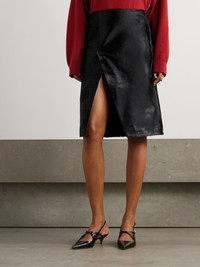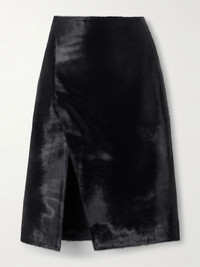 Myra wrap-effect calf hair midi skirt Black