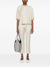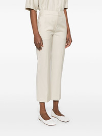Sofe trousers Highlights - Light beige - Concealed front zip fastening - Two side slash pockets - Rear jetted pocket - Cropped Imported Composition Outer: Virgin Wool 100% Lining: Viscose 100% SIZE & FIT Model measurements Height 5 ft 11 in(1.8 m) Bust/Chest 31.49 in(80 cm) Hips 36.61 in(93 cm) Waist 24.4 in(62 cm) FittingInformation Designed for a slim fit, these trousers offer a close fit at the waist, allowing a comfortable close fit and some movement over the leg Cropped in length Made from a midweight non-stretch fabric, this piece offers minimal elasticity when worn
