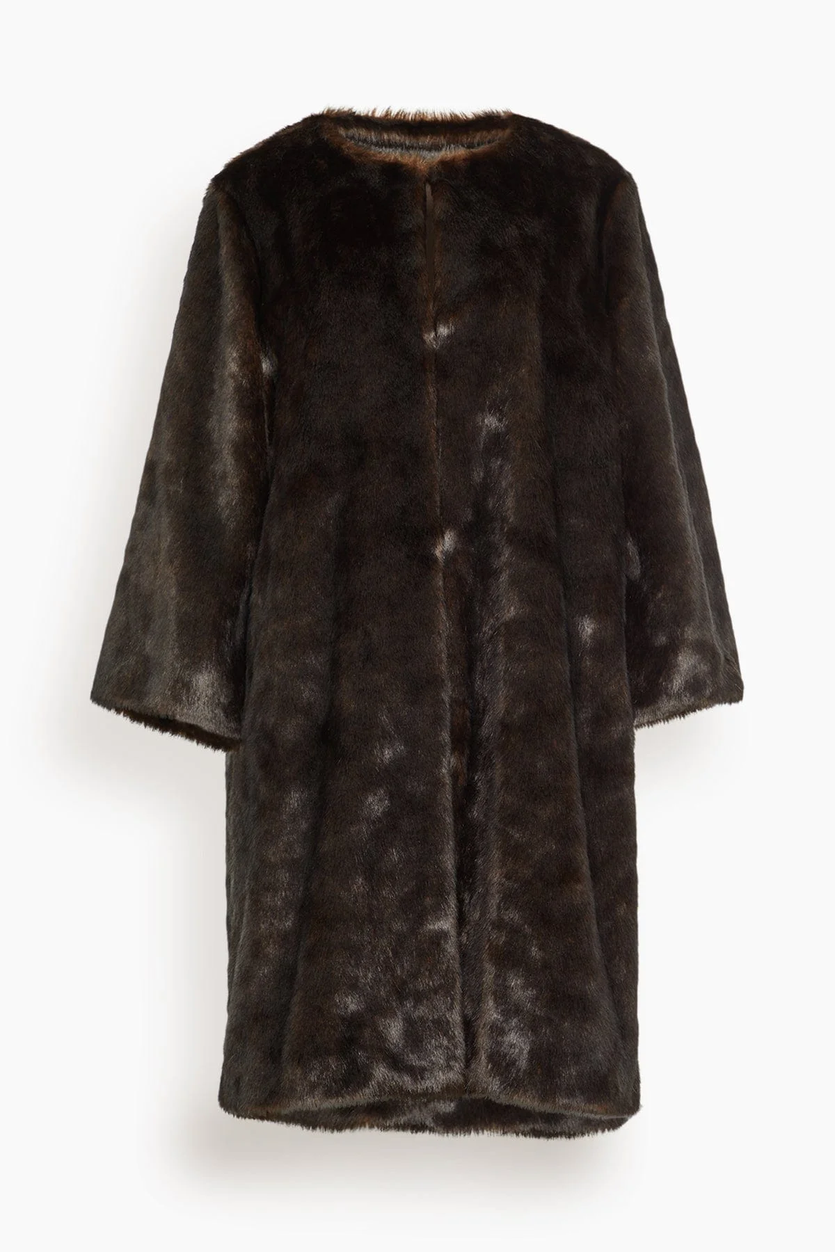 The Loulou de Saison Moore Round Neck Long Coat is a timeless addition to your wardrobe. You'll love the classic straight silhouette of this coat with hidden buttons in faux fur. Wear yours with a sweater and trousers. FIT DESCRIPTION - Fits true to size, take your normal size - Faux fur coat - Knee length - Straight silhouette - Hidden buttons - Collarless - 1% MODACRYLIC 19% POLYESTER