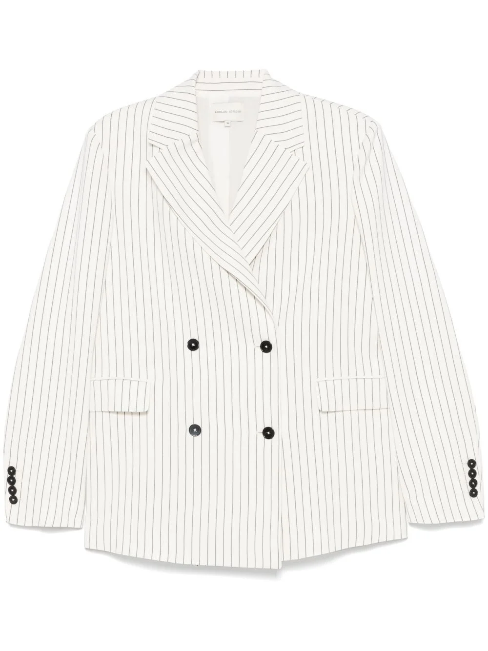 striped blazer Highlights - White - Double-breasted button fastening - Central rear vent - Buttoned-cuff sleeves - Two front flap pockets Imported Composition Outer: Viscose 76%, Linen/Flax 24% Lining: Viscose 100% SIZE & FIT Model measurements Height 5 ft 10 in(1.77 m) Bust/Chest 29.92 in(76 cm) Hips 34.25 in(87 cm) Waist 23.62 in(60 cm) FittingInformation Designed to be unstructured, offering a loose fit throughout The internal shoulder pads offer a structured shape Made from a midweight non-stretch fabric