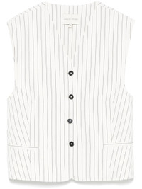 white front button fastening two front welt pockets adjustable strap to the rear V-neck - Color: WHITE - Made in: Romania - Designer Style ID: VANUA IVOBK Composition and care Outer Composition Linen/flax: 24.0%, Outer Composition Viscose: 76.0%, Lining Composition Viscose: 100.0%
