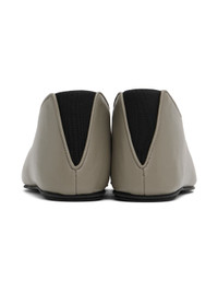 Grained leather slip-on loafers in taupe. · Square toe · Elasticized gusset at heel · Shearling lining · Logo patch at shearling footbed · Rubber sole Supplier color: Taupe Upper: leather. Sole: rubber. Made in Italy 242473F121002