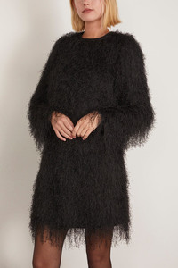 The Loulou de Saison Tina Longsleeve Mini Dress is a standout piece from their Fall 25 Collection. This mini dress is crafted in a playful fringed material that move with you. Wear yours with boots and a clutch. FIT DESCRIPTION MODEL MEASUREMENTS - Fits true to size, take your normal size - Mini length - Shift silhouette - Crew neckline - Fringe overlay - 100% Polyester - Harriet is wearing a size XS - Bust: 32" - Waist: 24" - Hips: 30.5" - Height: 5’8.5”