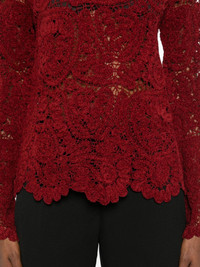 Wade scalloped-lace sweater Highlights - Burgundy - Lace detail - Scalloped hem - High neck - Long sleeves - Open knit Imported Composition Silk 100% SIZE & FIT Model measurements Height 5 ft 8 in(1.73 m) Bust/Chest 29.92 in(76 cm) Hips 33.07 in(84 cm) Waist 23.22 in(59 cm) Washing instructions Read Manufacturer Guidelines