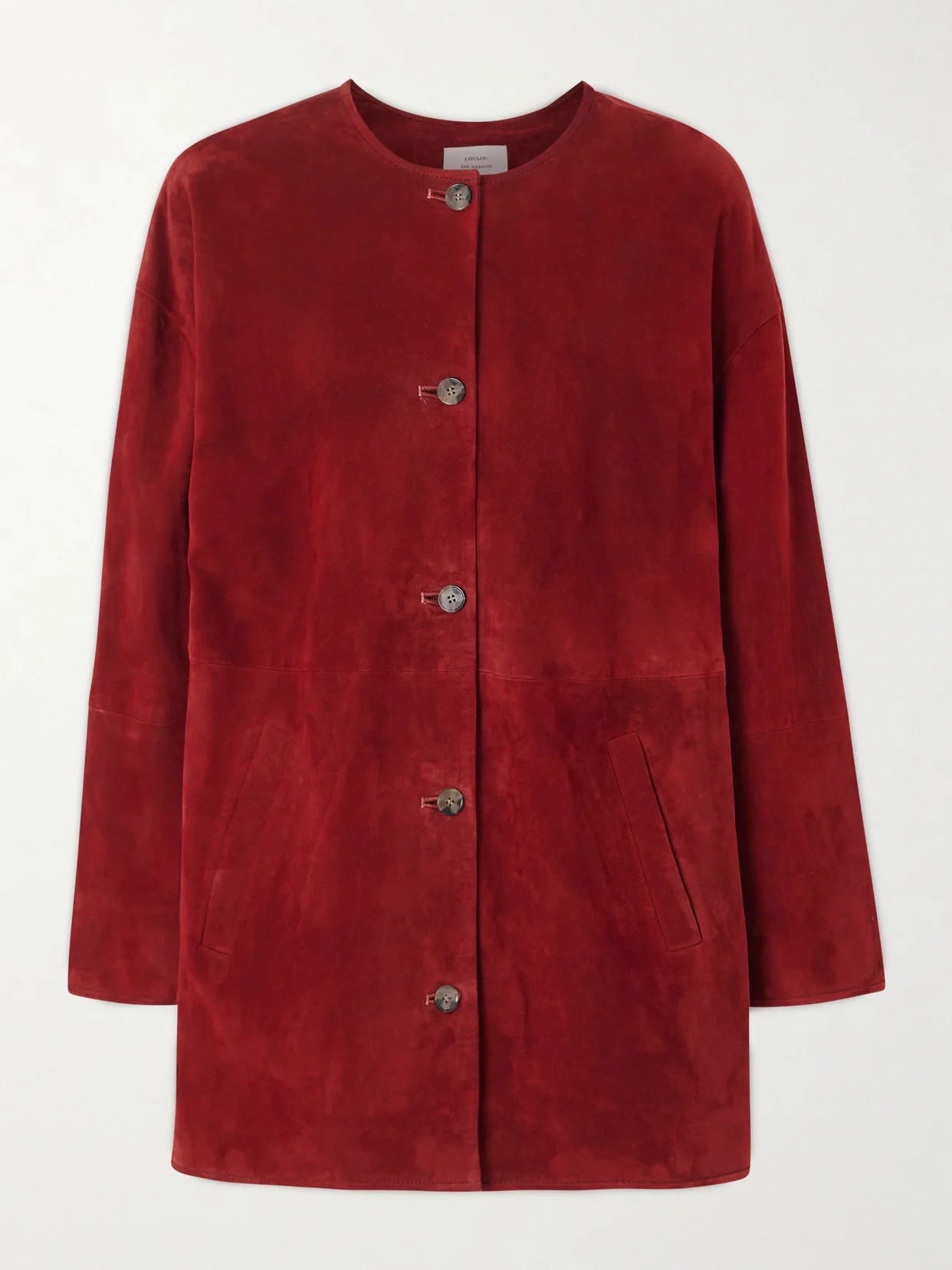 Softness and "intimate confidence" define Loulou de Saison's perennial collections. This 'Waren' jacket is cut from suede in a bright red hue and has a subtle curved silhouette that cocoons your frame. Wear yours with slim-leg jeans and loafers.