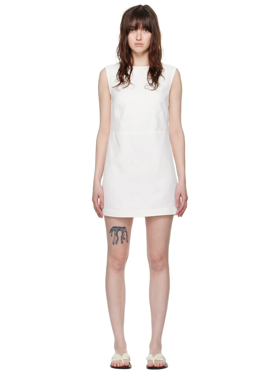 Viscose- and linen-blend twill dress. · Crewneck · Darts at chest · Concealed zip closure at side seam · Low back · Partial plain-woven lining Supplier color: Ivory Body: 85% viscose, 15% linen. Lining: 100% viscose. Made in Romania 241473F052001