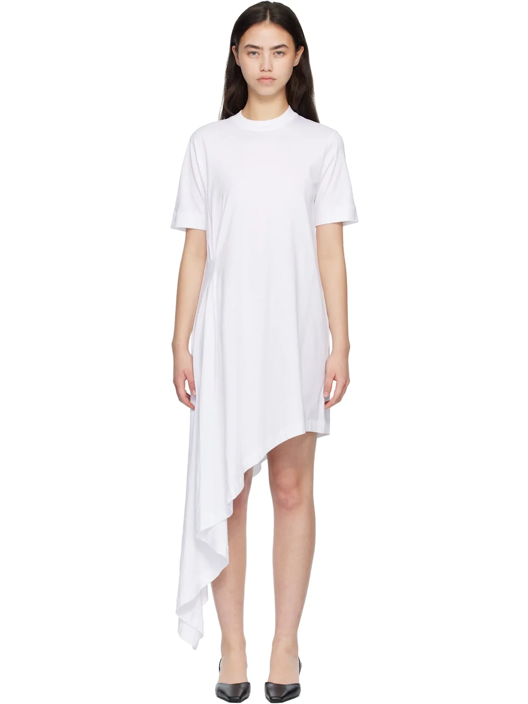 Organic supima cotton jersey midi dress. · GOTS-certified organic cotton · Rib-knit crewneck · Pleats at front · Asymmetric hem Supplier color: White 100% supima cotton. Made in Portugal 261473F054000