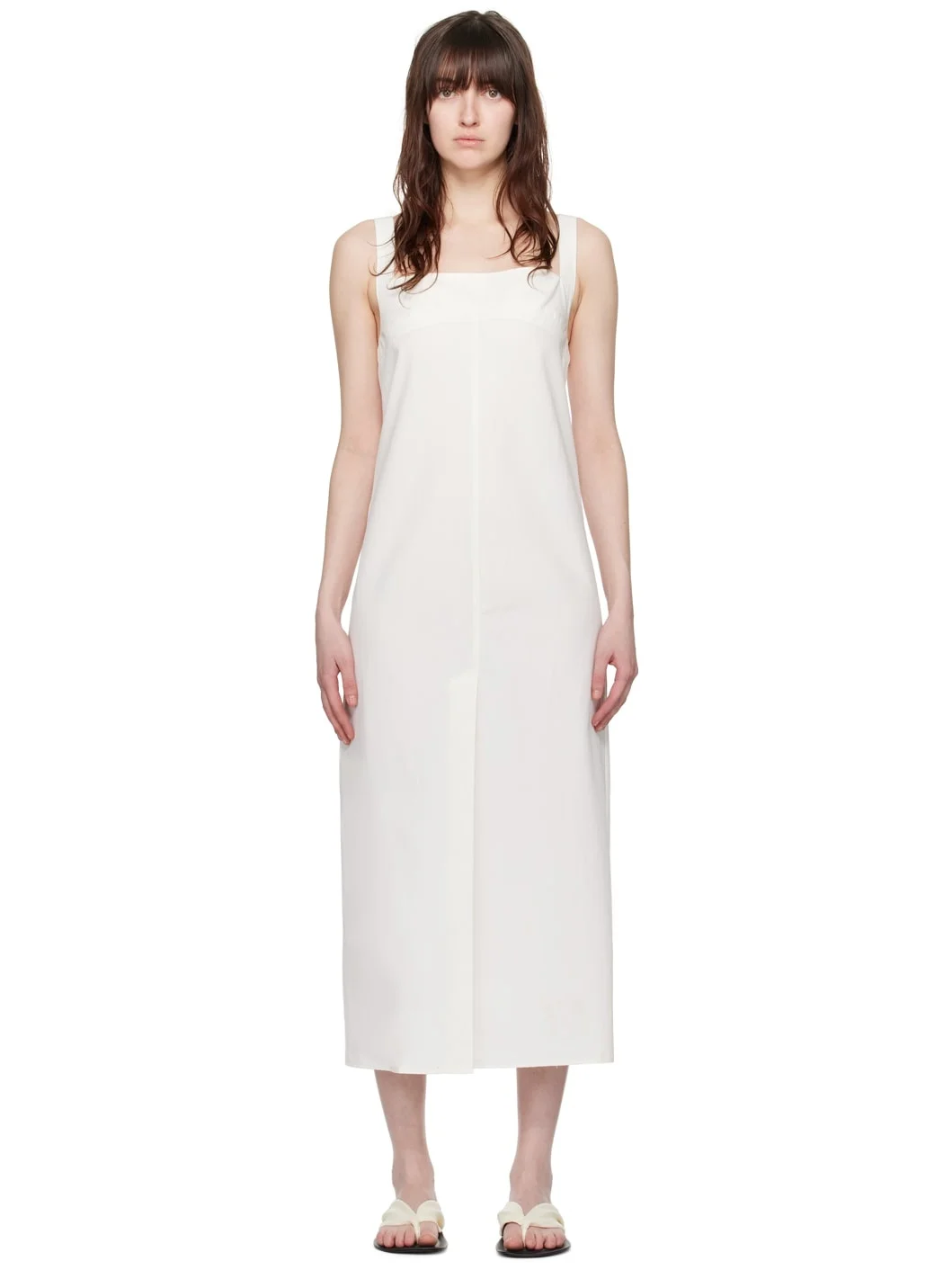Cotton poplin dress. · Square neck · Central vent at front and back hem · Concealed zip closure at back Supplier color: White 100% cotton. Made in Romania 241473F054002