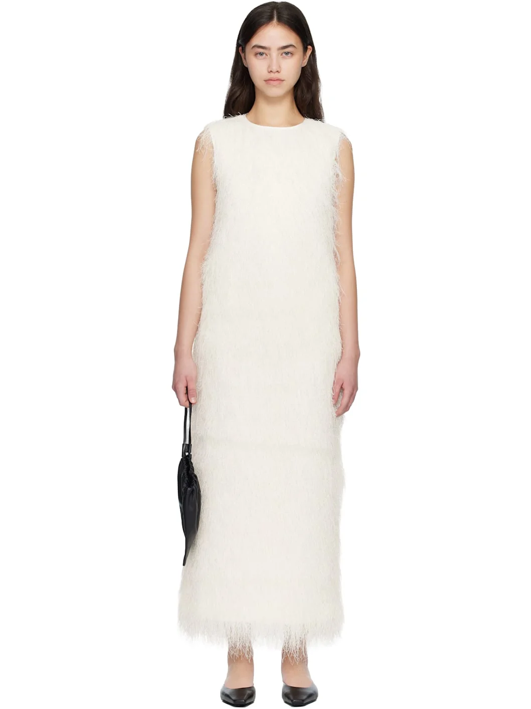 Shag-knit maxi dress. · Certified OEKO-TEX® STANDARD 100 · Crewneck · Zip closure at back · Central vent at back hem · Plain-woven cotton lining Supplier color: White Body: 100% polyester. Lining: 100% cotton. Made in Italy 261473F055004