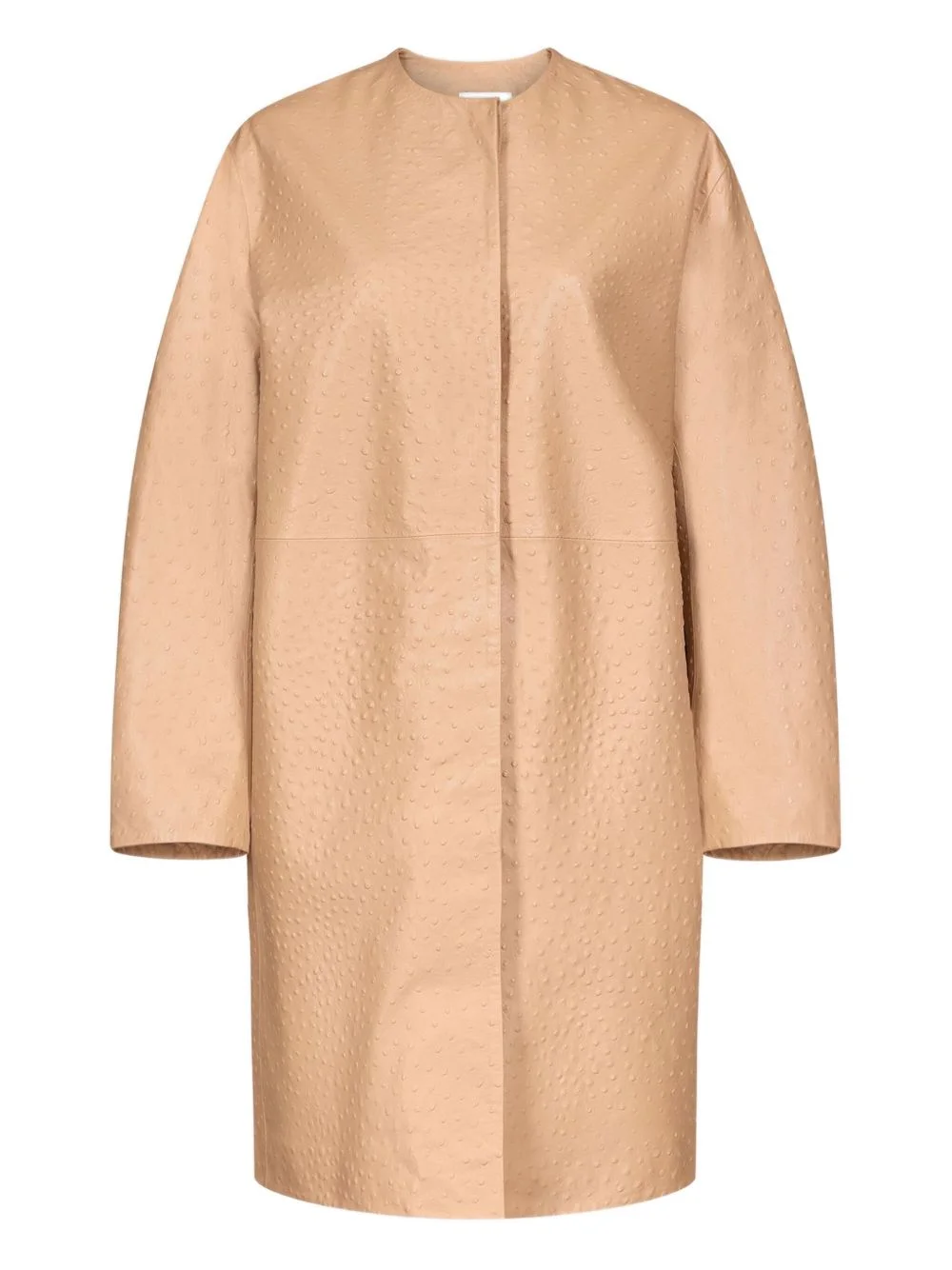 Yari leather Coat Highlights - Beige - Leather - Collarless neckline - Knee length Imported Composition Calf Leather 100% Washing instructions Read Manufacturer Guidelines