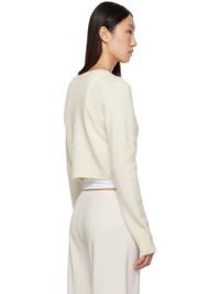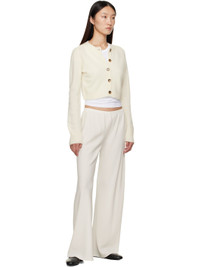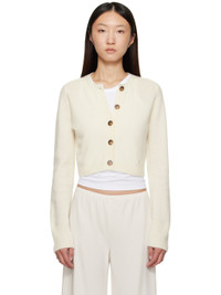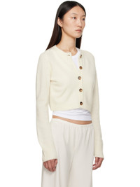 Knit cashmere cardigan. · OEKO-TEX® STANDARD 100-certified · Rib-knit crewneck, placket, hem, and cuffs · Button closure · Logo embroidered at front hem · Cropped hem · Saddle shoulders Supplier color: Ivory 100% cashmere. Made in Italy 252473F095014