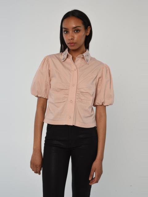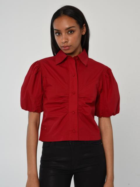 The Dylan Tee is Love the Label's take on your classic T - Shirt. With a stretch knit jersey body and cotton poplin sleeves, encased with elastic at the sleeve opening. Designed with wide pintuck pleats at the puff sleeves. The Dylan Tee is offered this season in a deep green.