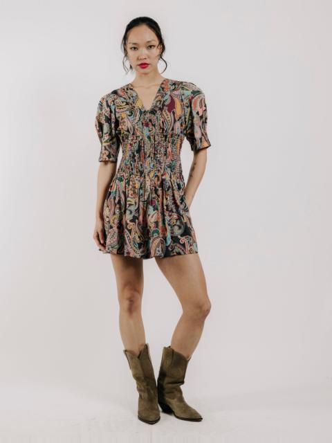 The Molly Mini Dress features a bold floral print accented with delicate lace insets for added texture. Designed with puff sleeves, a button-down front, and a tiered hem, it’s a playful yet feminine silhouette made for everyday ease.