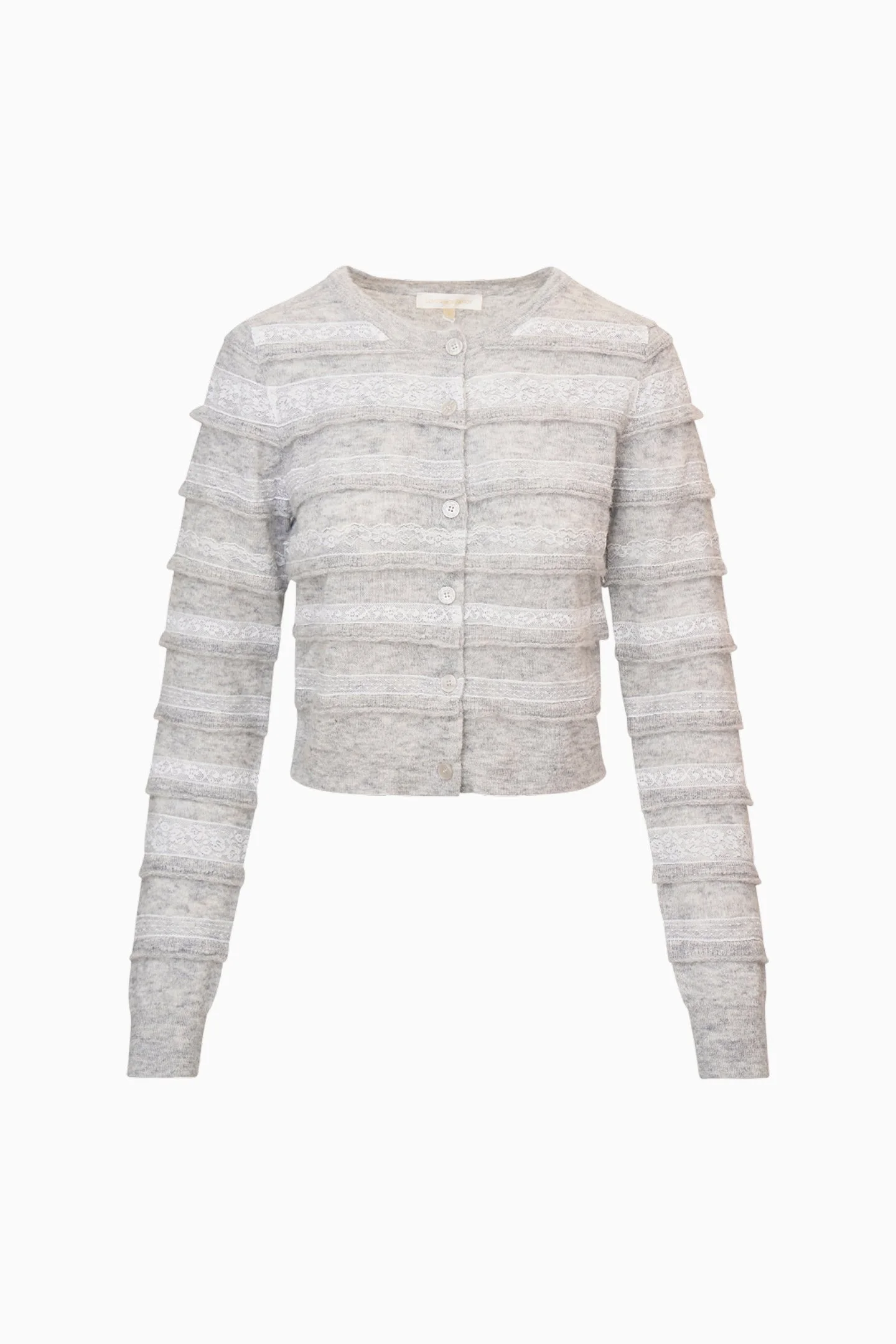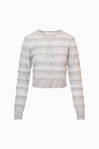 The Claralise Cardigan is an elevated update to our beloved Norden style, crafted in a lightweight, fuzzy blend of superfine alpaca, extrafine wool, and nylon. Tiny gauzy ruffles cascade across the body and sleeves, interspersed with a mix of top-applied lace in varying styles for a whimsical, romantic texture. Finished with a center-front placket and custom shell buttons, plus ribbed cuffs and collar, she’s a dreamy layering piece that combines cozy softness with intricate LoveShackFancy detailing. - 38% Superfine Alpaca, 21% Extrafine Wool, 41% Nylon DETAILS - 38% Alpaca, 21% Wool, 41% Nylon - Dry Clean Only SIZE & FIT Measurements based on Size S: - Front Length: 19 1/4" - Bust: 17 3/4" - Waist (Relaxed): 16 3/4" - Sweep: 15 1/2" - Sleeve Length: 24 1/8"