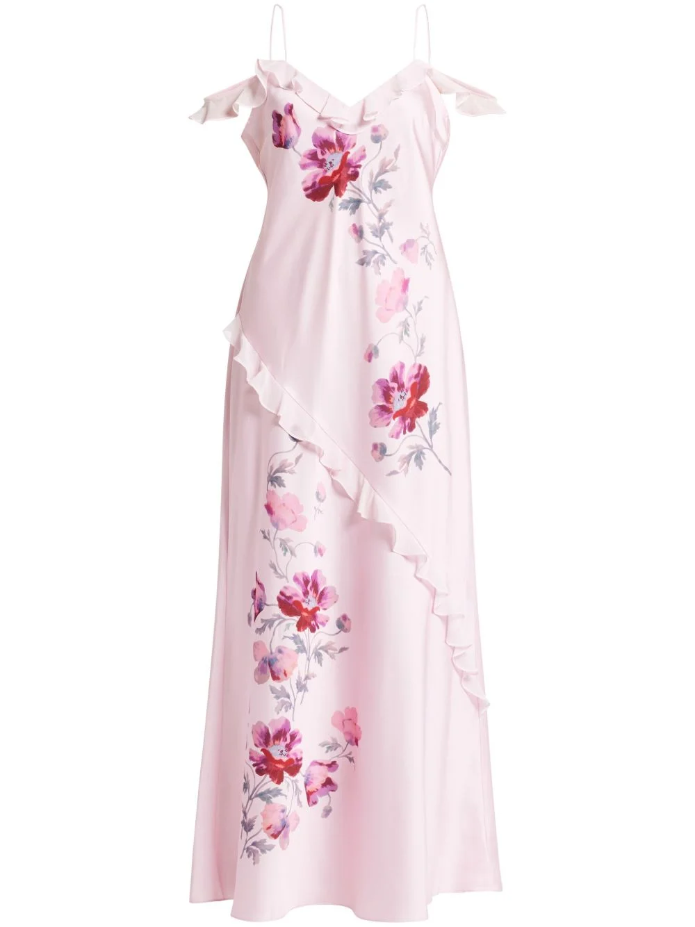 cold-shoulder maxi dress Highlights - Light pink - V-neck - Spaghetti straps - Cold-shoulder design - Ruffled detailing Imported Composition Polyester 100% Washing instructions Dry Clean Only