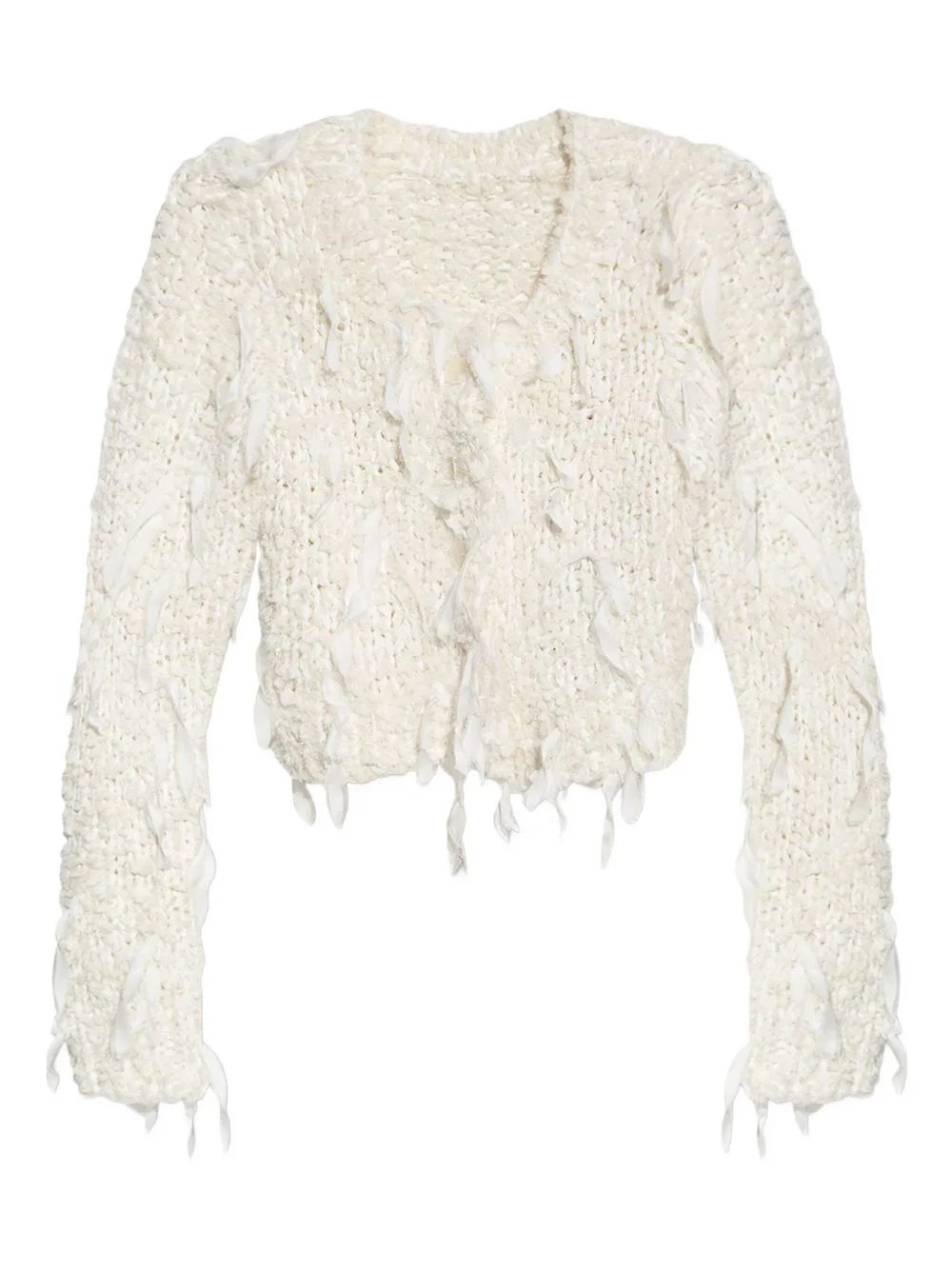 frayed cardigan Highlights - Off-white - Fringed detailing - Long sleeves - Knitted construction Imported Composition Outer: Polyester 100% Washing instructions Read Manufacturer Guidelines