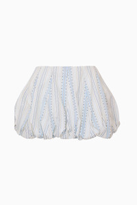 Playful and sweet, the Georgeanne Cotton Mini Bubble Skirt is a charming mix of soft stripes and florals with a flirty bubble hem. Pair with our matching Bensen Cotton Lace-Up Bustier. Details: - Bubble style mini skirt - Zipper-closure - Runs large, we recommend sizing down one size DETAILS - SHELL: 100% COTTON - LINING: 97% POLYESTER, 3% SPANDEX - MACHINE WASH COLD - DELICATE CYCLE - DO NOT BLEACH - TUMBLE DRY LOW, - LOW IRON IF NEEDED SIZE & FIT Measurements based on Size 4: - Model Height: 5'10" - Length: 13 1/2" - Waist: 29" - High Hip: 44" - Low Hip: 50" - Sweep: 41 1/4" - Lining: 11 1/2" - Runs large, we recommend sizing down one size